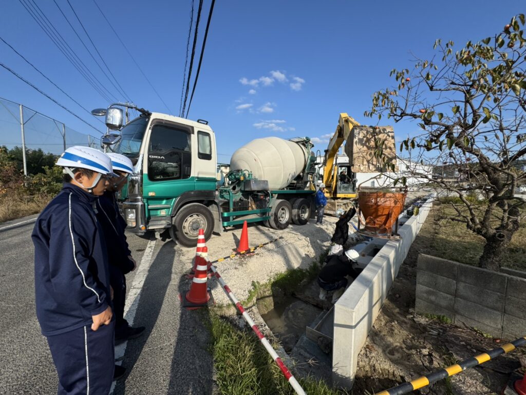 現場見学では、プロが進める効率的で安全な作業を間近で観察し、チームで働くことの大切さを学んでもらいました。
