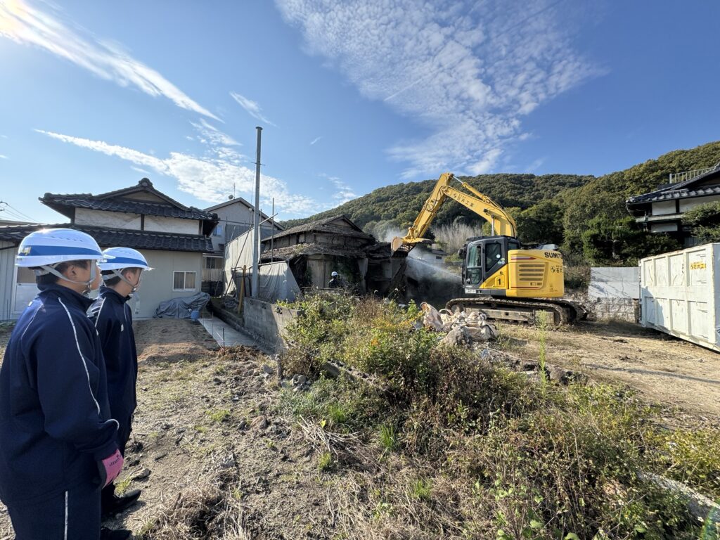 午後には、実際の現場を見学。大型重機が動く迫力や解体作業のスケールを目の当たりにし、解体業の現場の雰囲気を感じてもらいました。